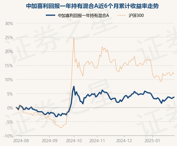 本站消息,1月27日,中加喜利回报一年持有混合A最新单位净值为1.0697元,累计净值为1.0697元,较前一交易日上涨0.21%。历史数据显示该基金近1个月下跌1.39%,近3个月下跌0.51%,近6个月上涨3.71%,近1年上涨8.54%。该基金近6个月的累计收益率走势如下图: